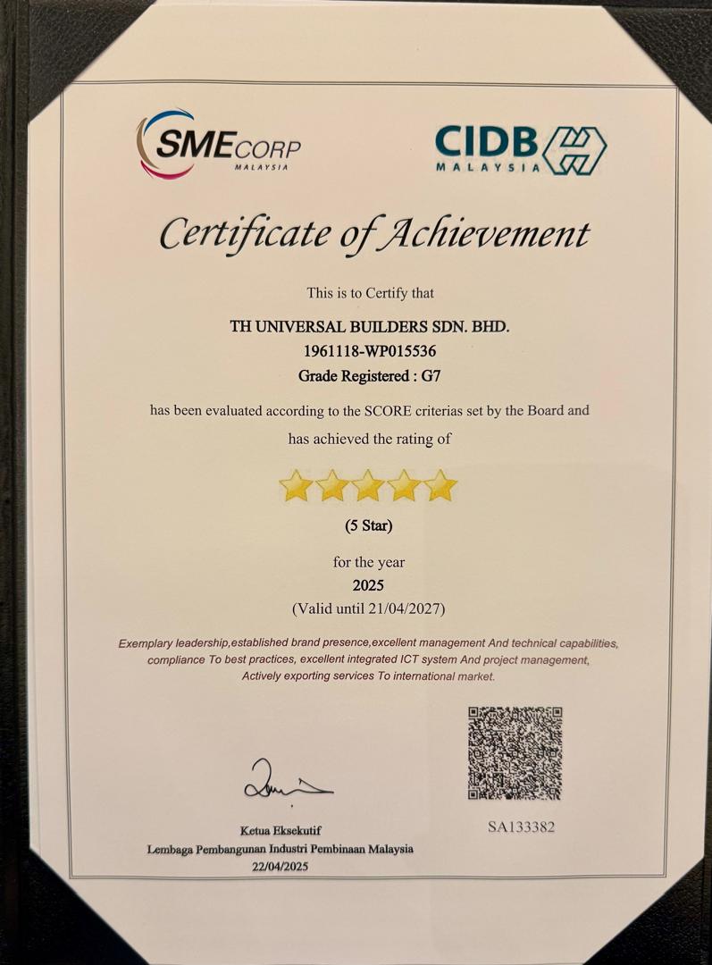 TH Universal Builders (THUB) received 5 Star Awards from CIDB for year 2025